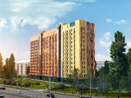 Апарт-комплекс Cleverland — это жилье бизнес-класса. В его состав входит благоустроенная территория и монолитный корпус высотой в 14 этажей с витражным остеклением. |